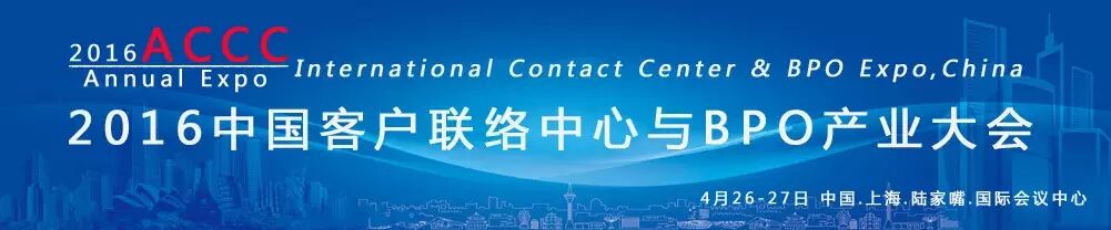 2016中国呼叫中心与BPO产业大会(ACCC)将于4月26-27日在上海.<国际会议中心>召开,60场管理层演讲,十大讲师培训分享。最新技术前沿,最新管理实践,聚焦大数据、服务外包,联络中心 客户体验 CRM 互联网电商.前600名在线注册登记报名的,即可免费参加(不接受现场临时参会).