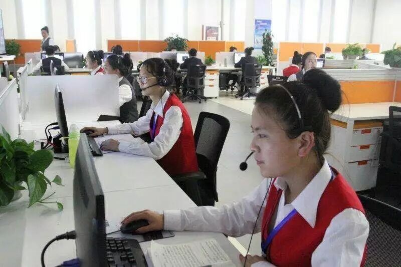 身穿红色工装的是平台新招的话务员们,她们均来自中卫本地,经过军训和服务礼仪培训使她们的身体素质和工作技能得到有效提升,她们红色的着装代表着宁夏的特产“枸杞”,将宁夏的文化展现出来。同时这批员工整体素质较高,大专以上学历占比46%,是我司全国35个平台中学历最高的,她们将作为未来平台管理干部的种子进行培养。